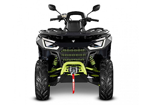 | elektrický naviják, tažné zařízení, kompozitní nosiče vpředu i vzadu, digitální multifunkční displej, přední ochranný rám, zadní ochranný rám, boční ochranné rámy, 12" ocelové disky, pérování s progresivně vinutými pružinami, ochranné kryty rukojetí |
