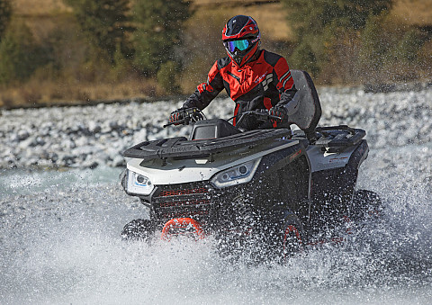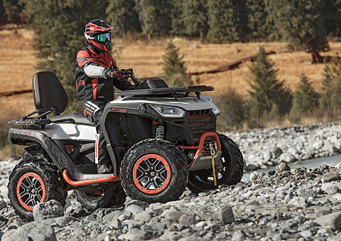 Elektrický posilovač řízení se třemi režimy, elektrický naviják, sedačka s opěrkou zad, tažné zařízení, kompozitní nosiče vpředu i vzadu, digitální multifunkční displej, Full-LED osvětlení, přední ochranný rám, zadní ochranný rám, boční ochranné rámy, 14" hliníkové disky se systémem Beadlock, 26" pneu, plně nastavitelné pérování s progresivně vinutými pružinami, ochranné kryty rukojetí, Smart Commanding System (SCS) + mobilní aplikace Smart-Moving App |