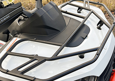 | elektrický naviják, tažné zařízení, kompozitní nosiče vpředu i vzadu, digitální multifunkční displej, přední ochranný rám, zadní ochranný rám, boční ochranné rámy, 12" ocelové disky, pérování s progresivně vinutými pružinami, ochranné kryty rukojetí |