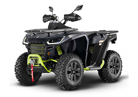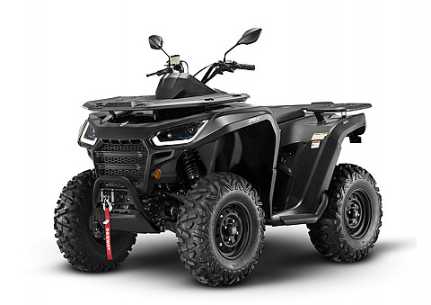 Užitková / pracovně-rekreační čtyřkolka, E5 - L7e, kapalinou chlazený jednoválec 570 cm3 EFI, automatická převodovka P/R/N/L/H, brzdění motorem, pohon 4x4 se dvěma uzamykatelnými diferenciály, dvojitá A-ramena vpředu / dvojitá A-ramena se stabilizátorem vzadu, hydraulické tlumiče s progresivními pružinami, přední, zadní a boční ochranné rámy, tažné zařízení, el. naviják 2500 lbs, kompozitní nosiče vpředu a vzadu, 12V zásuvka, 12" ocelové disky, ochranné kryty rukojetí.
