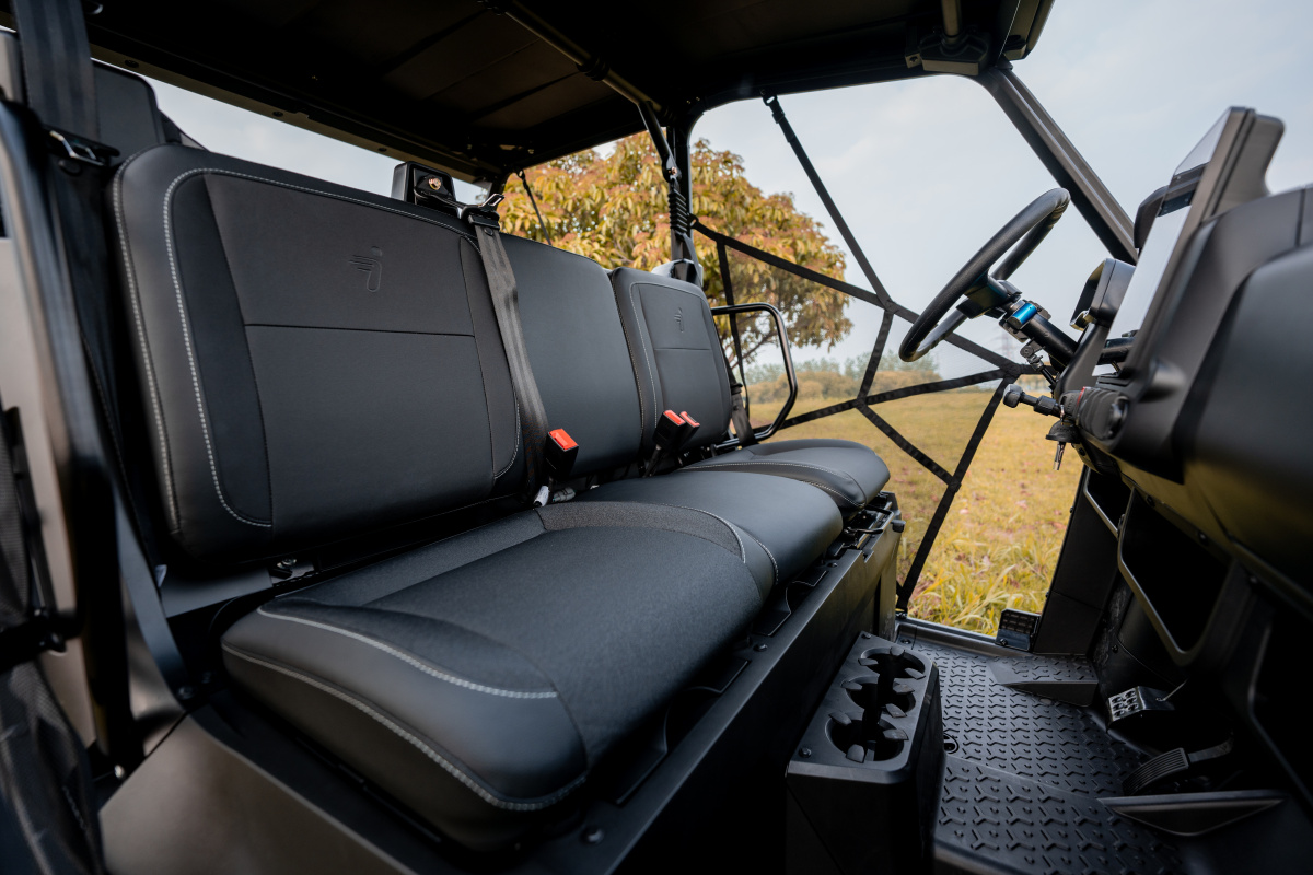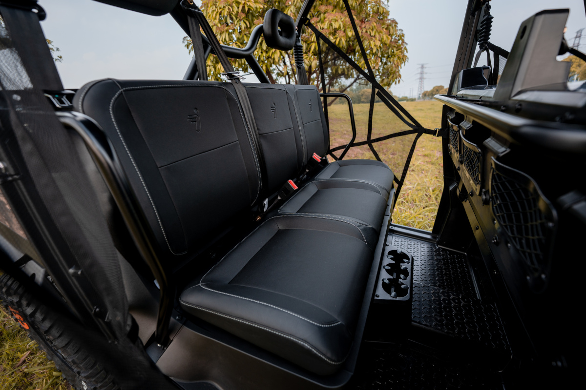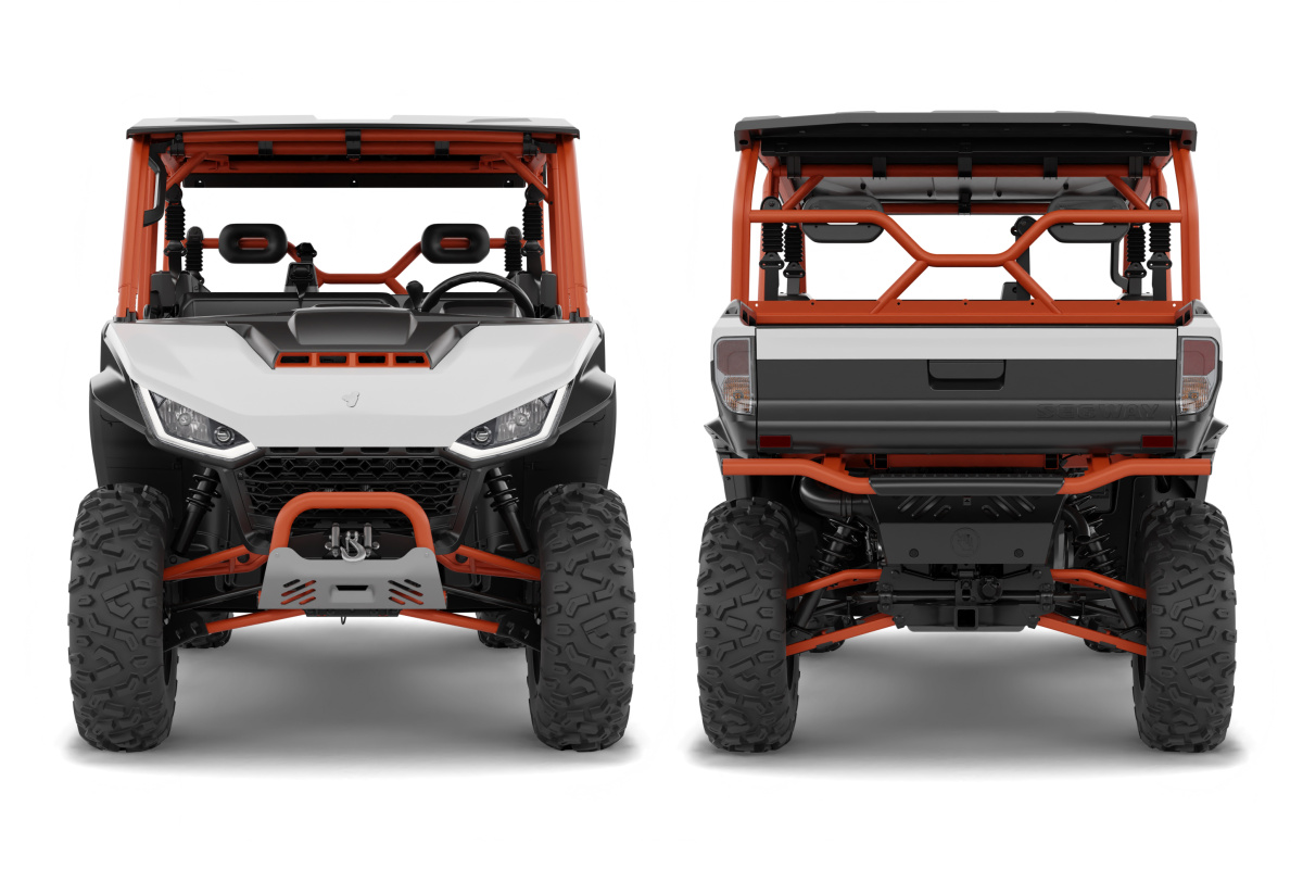 Elektrický naviják, elektrický posilovač řízení, tažné zařízení, nastavitelný volant, anatomicky tvarovaná sedadla s hlavovou opěrkou, tříbodové pásy, Full-LED osvětlení, digitální přístrojová deska, přední ochranný rám s tažným okem, zadní ochranný rám, ochranná bezpečnostní konstrukce kabiny ROPS, pevné boční dveře, pevná střecha, sklopná korba, 14" hliníkové disky se systémem Beadlock, nastavitelné pérování s progresivně vinutými pružinami, Smart Commanding System (SCS) + mobilní aplikace Segway Powersports