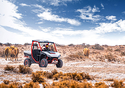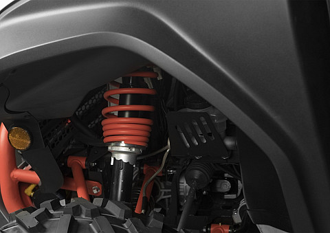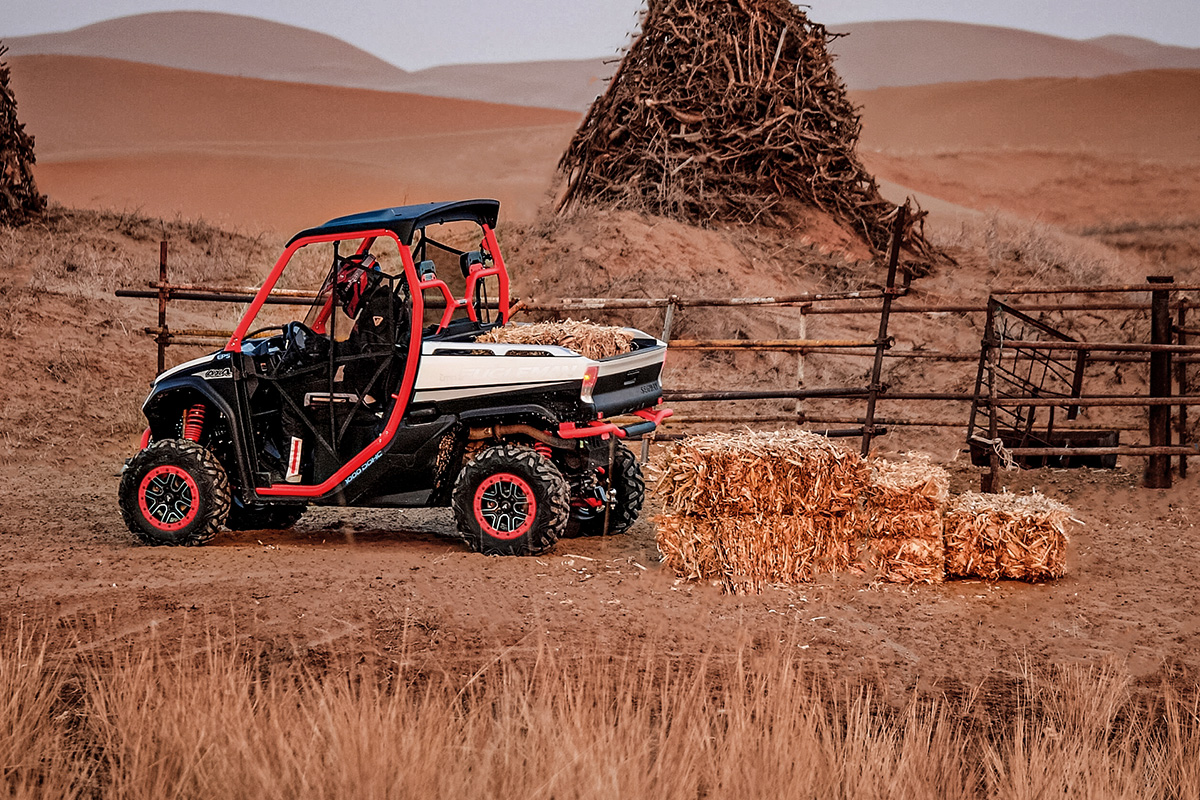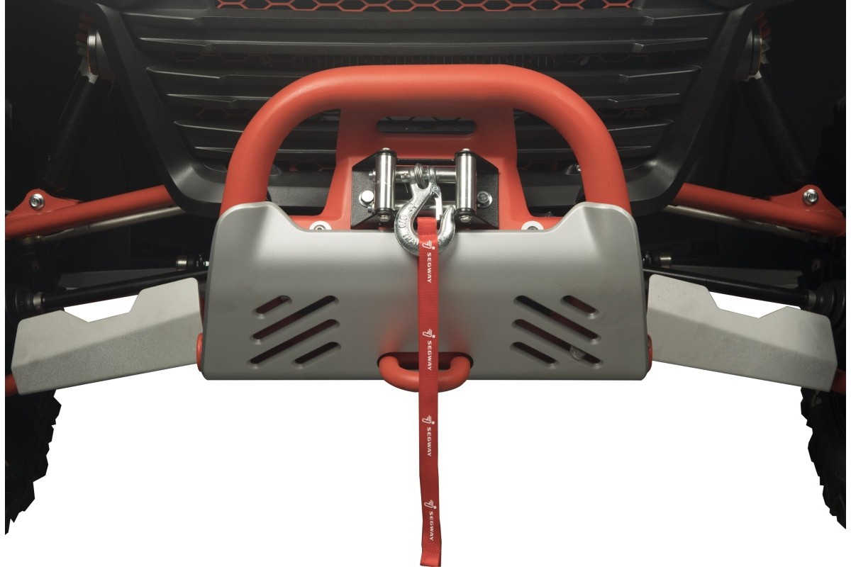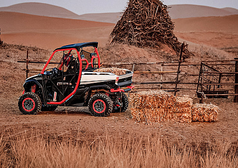 Elektrický naviják 3500 lbs, inteligentní elektrický posilovač řízení, TFT digitální přístrojová deska, Smart Commanding System (TBOX), tažné zařízení, nastavitelný volant, anatomicky tvarovaná sedadla s hlavovou opěrkou, tříbodové pásy, přední ochranný rám, zadní ochranný rám, bezpečnostní sítě na straně řidiče i spolujezdce, pevná střecha, velká sklopná korba, 14" hliníkové disky, poloviční čelní plexi. |